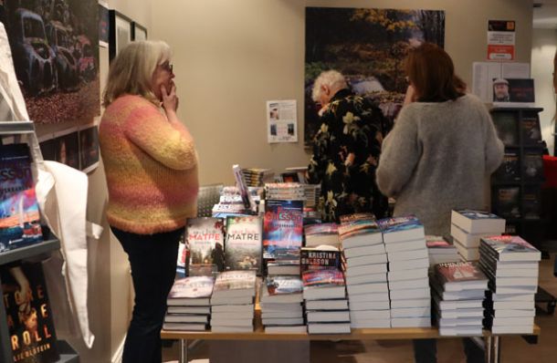 Tvedestrand sentrum ligger ganske rolig på denne årstiden, men denne helga var det liv i byens antikvariater. Etter det politiske innslaget, delte forfatterne seg inn i to puljer, og guidet de som var interessert gjennom gode bøker etter beste evne.