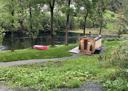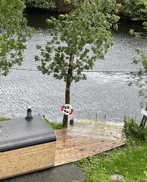 Dersom du ønsker er det mulig å bade fra den lille badebryggen, og benytte badstuen som står der. To av gjestene benyttet sjansen og hoppet ut i elva som holdt 13 grader. "Deilig og forfriskende", var kommentaren.