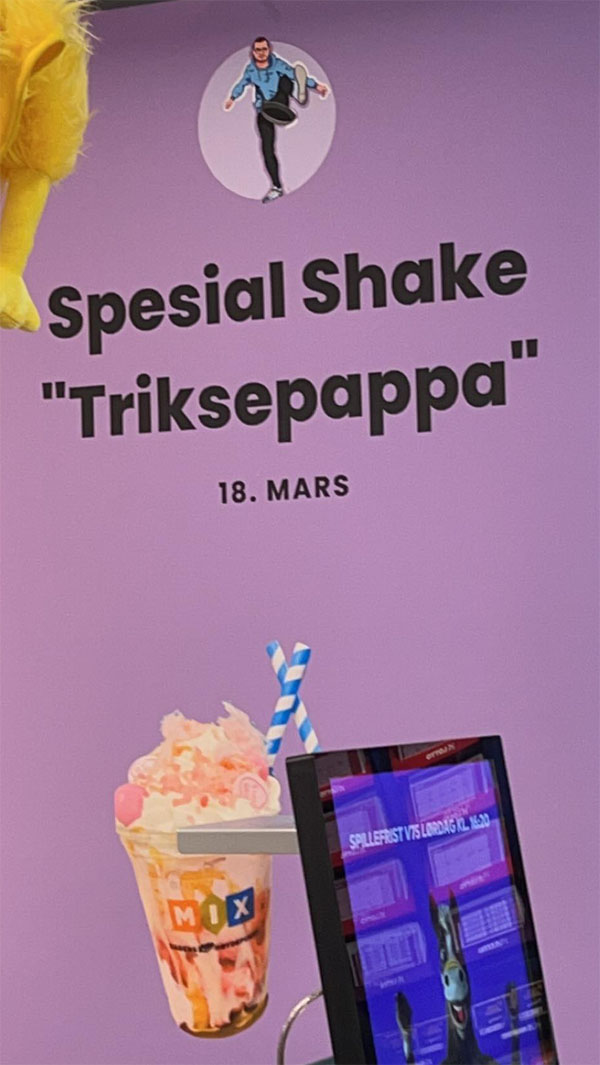 Klokka tolv lørdag, 18. mars var det rød løper og snorklipping da Triksepappa lanserte to typer milkshake. Det var to typer smak, jordbær og energidrikk. De ti første som slapp inn fikk gratis shake.