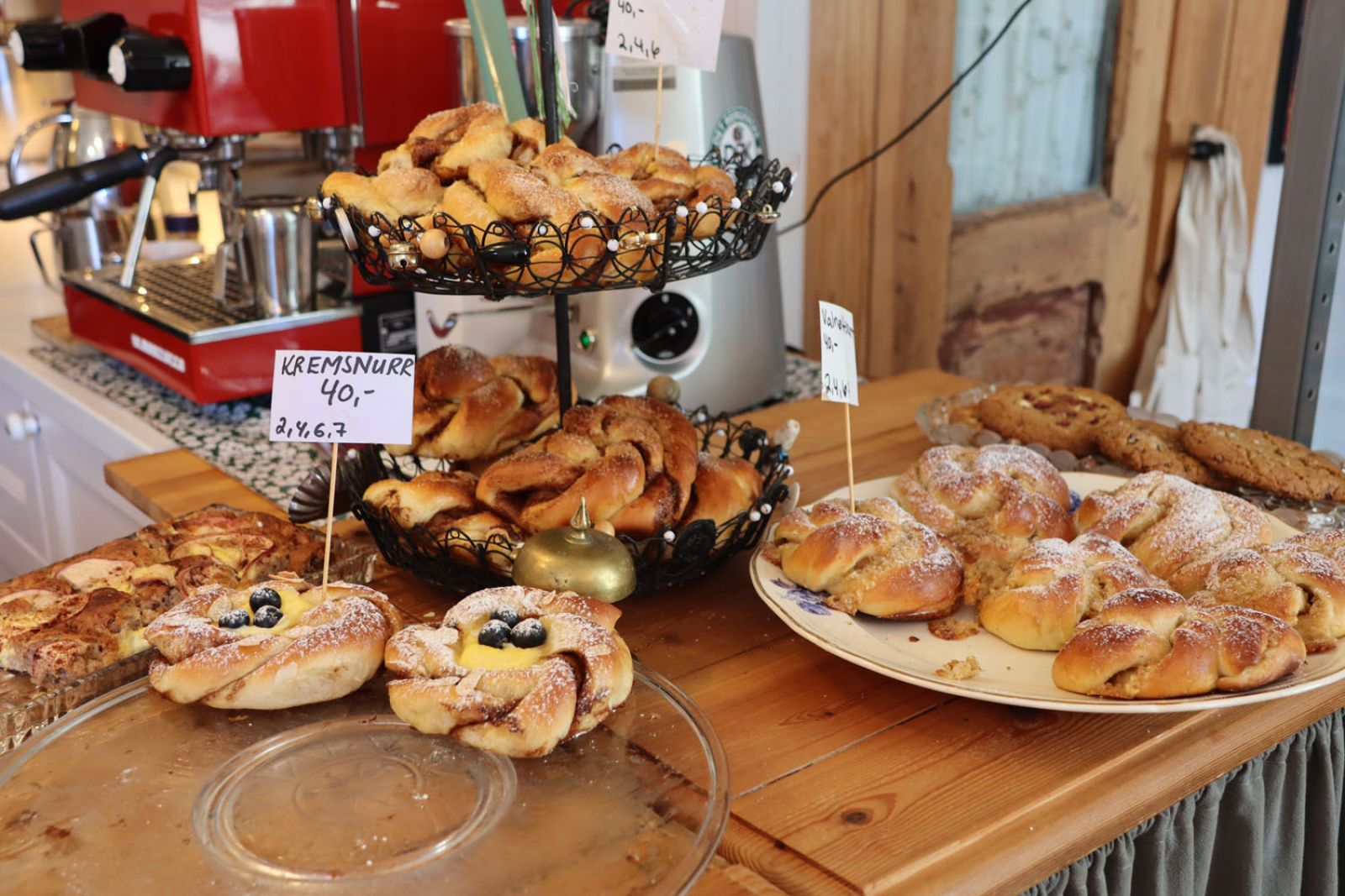 Da vi stikker innom en torsdag ettermiddag, møter vi innehaver Krisztina Holen bak disken. Det er koselig atmosfære i det lille lokalet, og den blide og hyggelige damen serverer oss focaccia med spekeskinke. Det smaker helt nydelig. Til dessert får vi smake på den gode baksten, kremsnurr. Helt nydelig det også. Hjemmelaget bringebærsaft og kaffe får vi også.