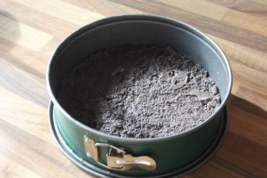 Ta oreobunnen ut av fryseren og hell isblandingen over i springformen. Legg den så tilbake i fryseren og la den stå der i 7 t før vi legger på mousselaget. Det tar lang tid for isen å fryse, så her gjelder det å være tålmodig. I mellomtiden kan vi lage sjokolademoussen og oreofyllet.
