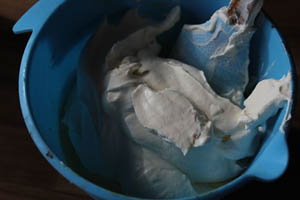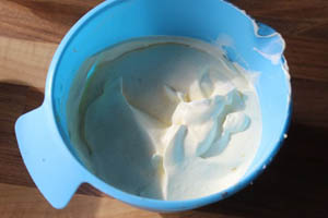 Når kremen er ferdig skal du venne eggemassen forsiktig inn i kremen.