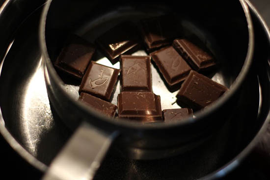 Smelt kokesjokoladen i vannbad. Ha eggehviter og sukker i en mikserbolle.