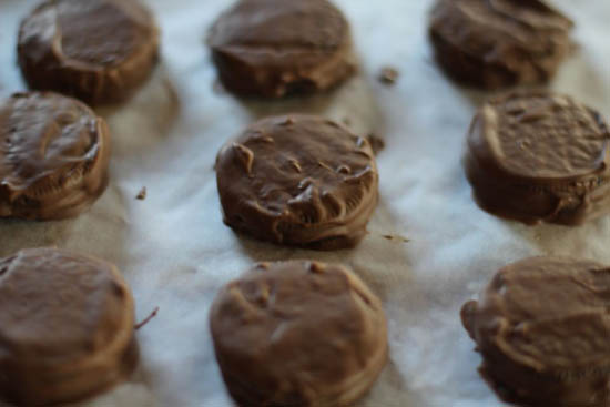 Legg så annenhver orekjeks og orekjeks med melkesjokolade på hver kremtopp.