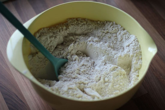 Finn fram en stor bakebolle og bland hvetemel, sukker, tørrgjær, salt og kardemomme sammen.