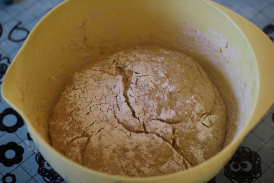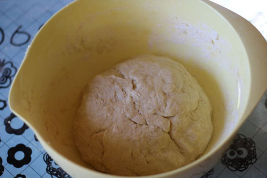 Etter 1 t kan vi begynne å bake ut deigen. Sett ovnen på 225 grader.