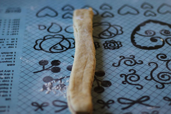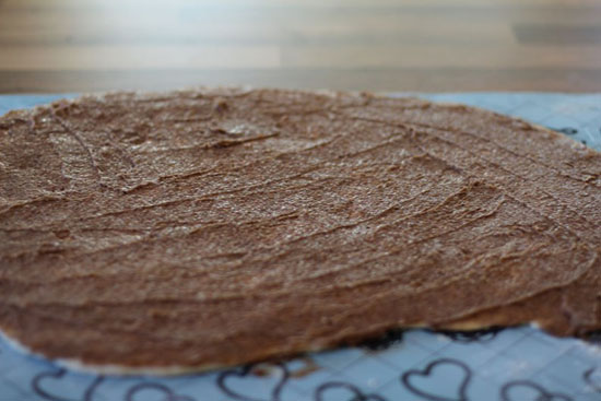 Del deigen i to. Kjevl ut to flate halvdeler. Ha kanelfyllet på den ene halvdelen. Pass på at du kjevler disse sirka like store.