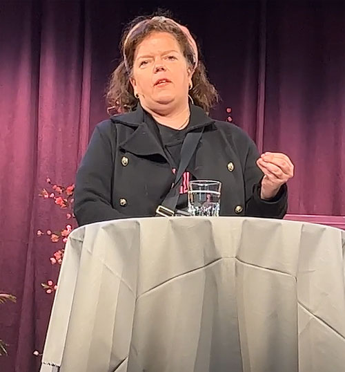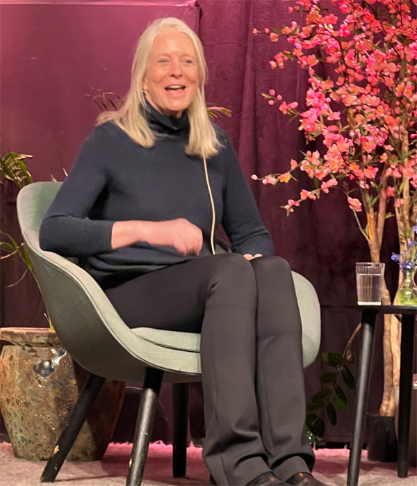 Neste post på programmet var amerikanske Bonnie Garmus. Hun ga i fjor ut boka "Leksjoner i god kjemi". Dette var debutboka hennes, og hun var 65 da den ble sluppet. Boka har handling fra 60-tallet, og skal visstnok være veldig morsom. Tidligere var forfatteren blitt refusert 97 ganger, fortalte hun.
