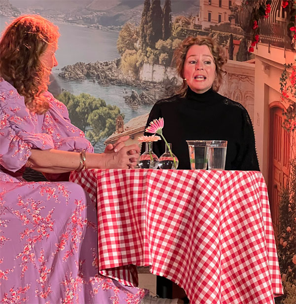 Så ble det brått julestemning. Kjersti Herland Johnsen og Siri Østli ble bokbadet av Sarah Natasha Melbye. De har begge skrevet julebøker - "Jul på Himmelfjell hotell" og "Adventskalenderen". Begge forfatterne uttalte at bøkene også kan leses utenom juletiden. Førstnevnte fortalte at hun nå jobber med boka "Sommer på Himmelfjell Hotell", så da har vi noe å glede oss til. Østli gjorde et morsomt poeng ut at hun sjeldent husket personene og handlingen i bøkene hun allerede hadde gitt ut, mens Johnsen fortalte at hun google virkelige personer, og brukte dem som en mal i bøkene sine. Ved siden av sitt forfatterskap, jobber hun som redaktør hos Gyldendal.
