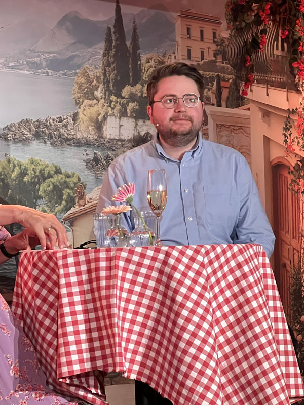 Så var det endelig trekkplasteret Harry Whittaker. Han er sønnen til Lucinda Riley, og har fullført serien om "De syv søstre" etter at moren døde. Boka har verdenspremiere 11. mai. Han fortalte om arbeidet med boken, og at han hadde fått instrukser fra moren hvordan handlingen skulle være. Han ble bokbadet av Kari Birkland.
