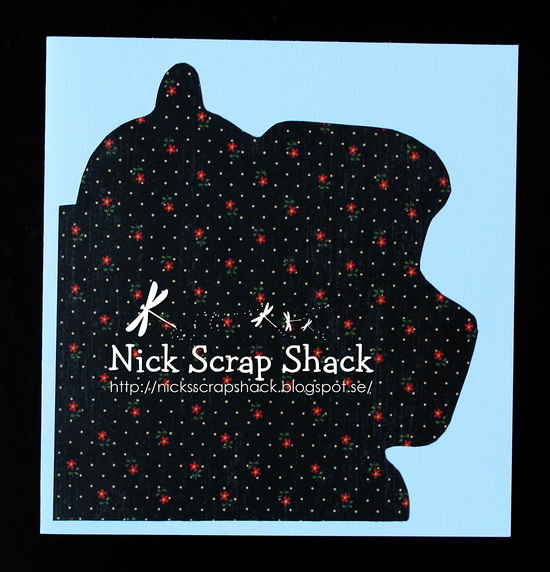 Sedan placerar jag dem som jag vill ha dem på ett mönstrat papper och ritar runt kanten med en blyertspenna. När det är klart klipper jag ut formen, chalkar kanten och sätter sedan fast den på min kortstomme. Sist klipper jag runt mitt mönstrade papper, jag klippte så det bildades en ca ½ cm bred ram av kortstommen.
