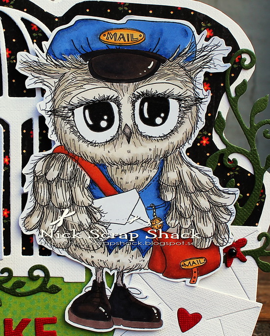 Utmaningen den här gången var att skapa ett kort som inte är fyrkantigt. Detta är för mig en riktig utmaning då jag oftast gör just kvadratiska eller rektangulära kort. Utmaningen sponsras av Polkadoodles och jag har använd en digital stämpel som heter Birthday Mail Twiggy & Toots.